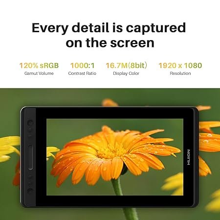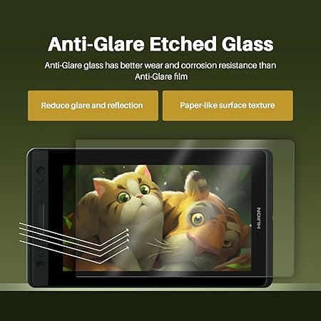 Outstanding Visuals: HUION Kamvas Pro 13 features a stunning 13.3-inch full-laminated screen with Full HD resolution, letting you enjoy immersive viewing in great clarity and fine detail. And it reduces the parallax to the lowest so you can easily control the cursor where you expect to be. Together with IPS panel and anti-glare glass, graphics draiwng monitor is able to reduce the interference of ambient light on the creation and show every detail clearly across the wide 178° viewing angle.