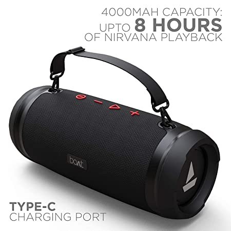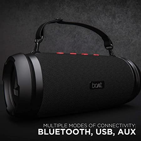Groove to your favourite tracks with this boAt Bluetooth speaker. With its twin equaliser modes and 40 W of audio output, this speaker delivers clear and distinct sound in both indoor and outdoor settings. Also, its 4000 mAh battery keeps you entertained for up to 15 hours on a single full charge.