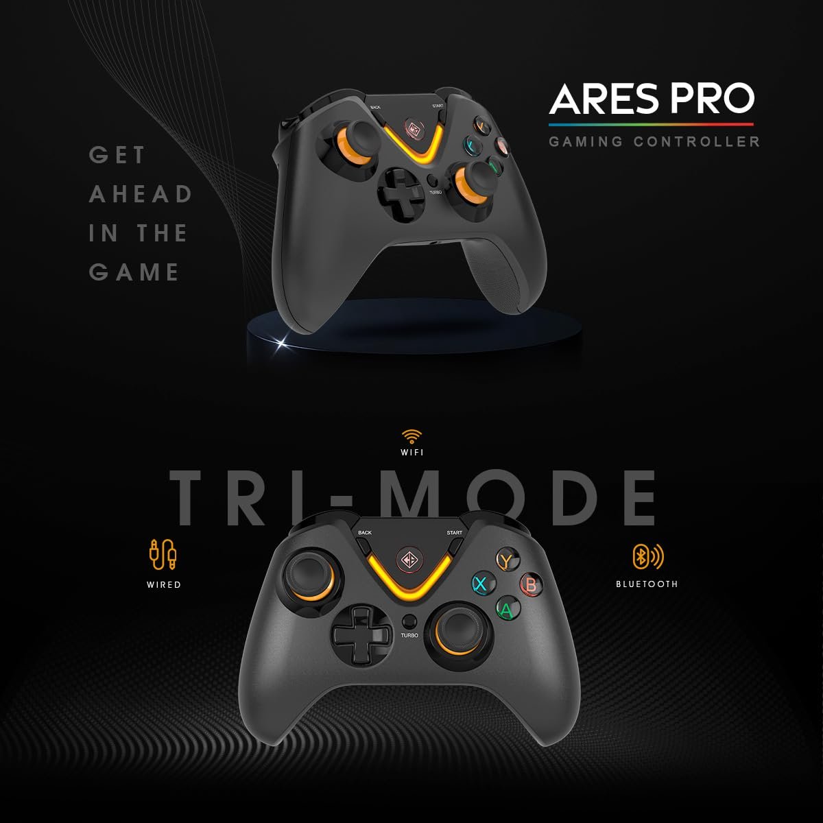 Cosmic Byte Ares Pro Wireless Controller for PC, Android, iOS – Tri-Mode (2.4GHz, Bluetooth, Wired), Hall Effect Joysticks & Triggers, 1000Hz Polling, Backlit Buttons, 3.5mm Audio Port, Upgraded Windows Software Support – Black (Open Box New)