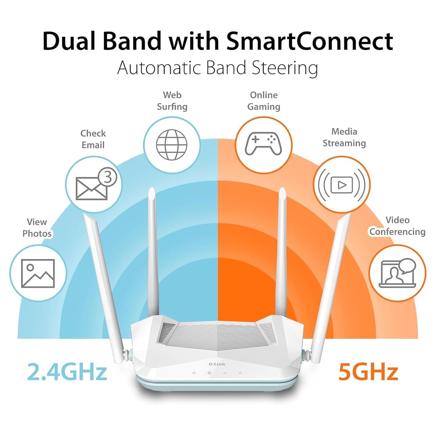 D-Link R15 | WiFi 6 Speed 1500 Mbps |Covers Upto 2500 Sq. Ft.| Dual Band | Gigabit Port| AI Powered Mesh Router |High-Performance |High-Gain Antennas |MTCTE Certified (Open box new)