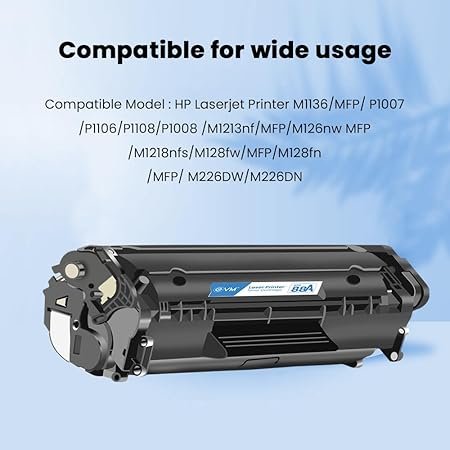 Compatible for wide usage: Excellent choice for school, bank, office, hospital and even at your home. For Use In : HP LaserJet P1007/P1008/P1106/P1108/Pro M1136/M1213nf/M1216/M1139 MFP HP LaserJet Pro M202dw, HP LaserJet Pro MFP M128/M226, HP LaserJet Pro M1219nf