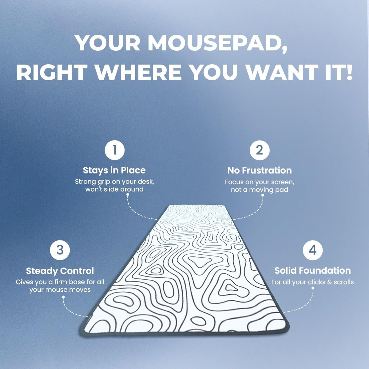 STABILITY: Anti-slip rubber base keeps the mousepad firmly in place during intense gaming sessions or regular office work