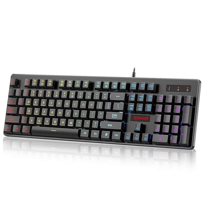 Redragon Dyaus K509 Wired Semi Mechanical Gaming Keyboard with 7 RGB Backlit Colors on Keys & Without Edge Side Light Illumination – Black (Open Box New)
