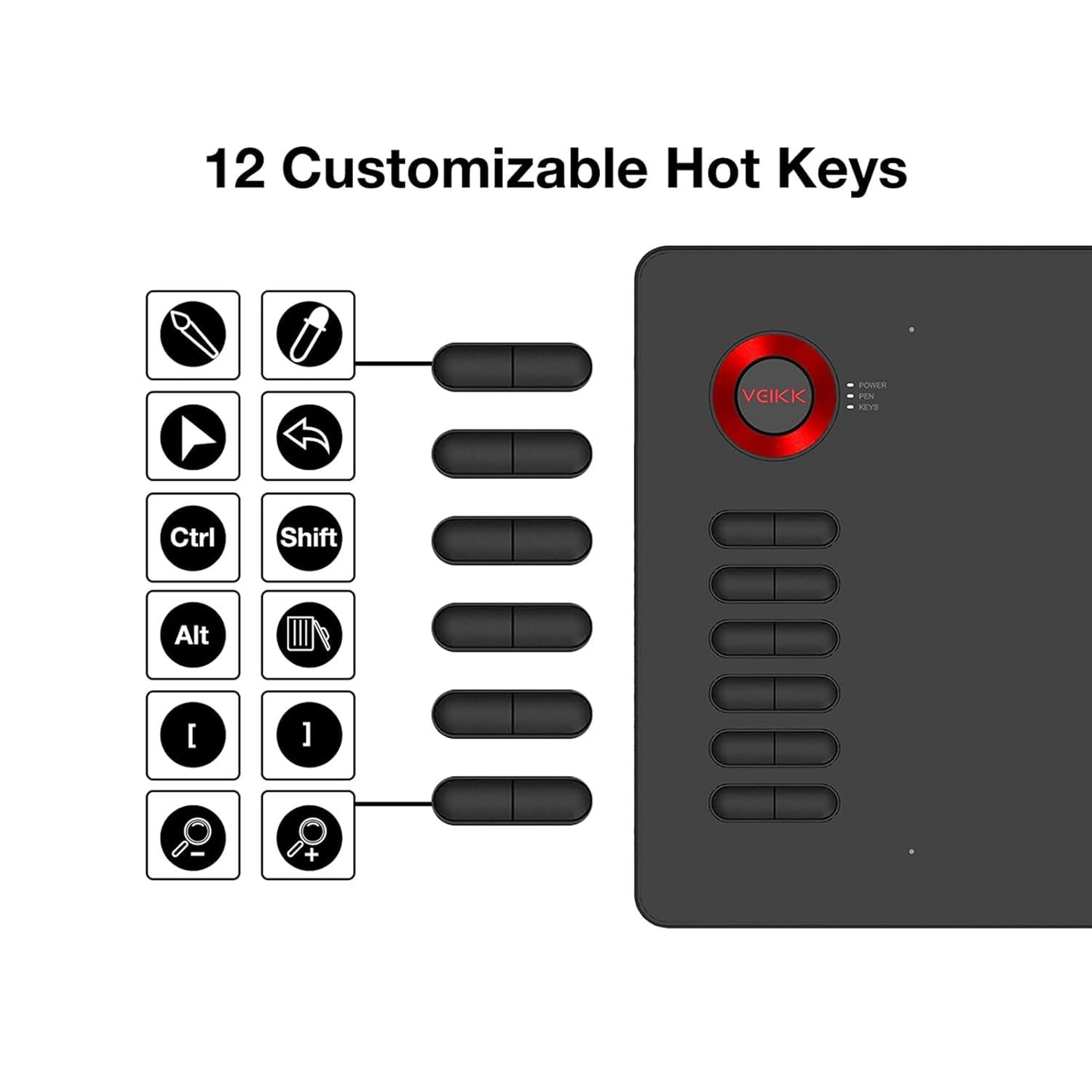 【Customizable Shortcut keys】12 express keys can be fully customized through the driver according to different software or painting habits, making the tablet a more efficient tool for working. The VEIKK A15 graphic tablet is designed for both right and left-handed users, and can be quickly set up on the VEIKK writing tablet driver interface.